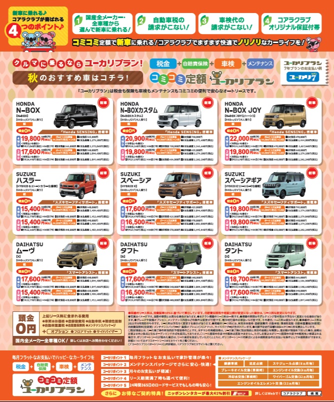 コミコミ定額ユーカリプラン(リース)お見積りご相談は公式ラインで友だち追加で!